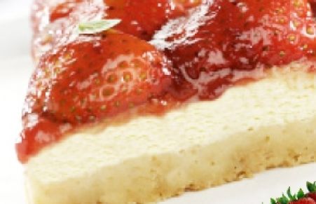 Pastel de queso coronado con mermelada clásica sin trozos de fresa
