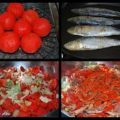 3º picamos los tomates,arenques y cebolleta en trocitos pequeños.