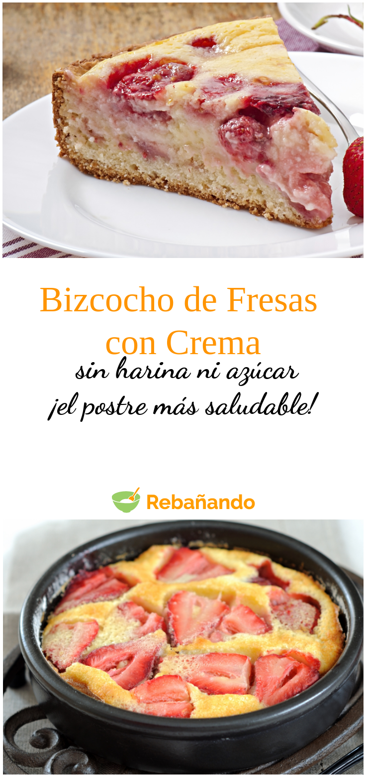 Bizcocho de fresas con crema sin harina ni azúcar, ¡el postre más saludable!