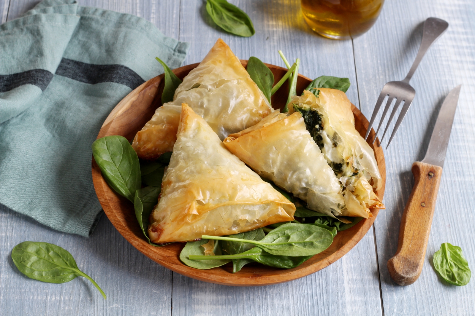 ¡Demasiado ricos estos triángulos de espinaca y queso con masa filo!