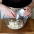 - Mezcla en un tazón los ingredientes secos: harina de almendra, cacao, nueces troceadas, bicarbonato, chispas y stevia.