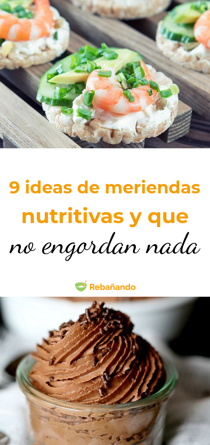 Es normal que entre la comida y la cena te dé hambre y sientas ganas de picar algo. Sin embargo, la mayoría de las meriendas son ricas en calorías o grasas y no son la mejor opción si nos interesa conservar un peso saludable. Por eso te proponemos 9 ideas de meriendas sabrosas, fáciles y que sin hacerte ganar peso, te van a quitar la sensación de hambre por un buen rato. Dulces o saladas, ¡hay opciones para todos los gustos!