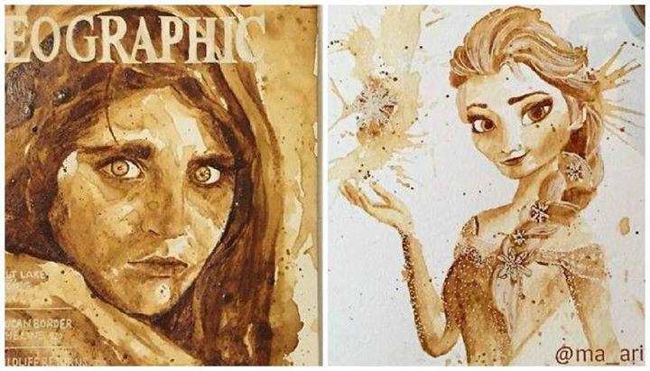 Este es el trabajo de Maria A. Aristidou, una artista que ha trabajado en varios países como Inglaterra o Chipre y que realizó su primer dibujo con café por error o mejor dicho, por accidente. Desde entonces, utiliza el café o mezclas de café para sus obras.