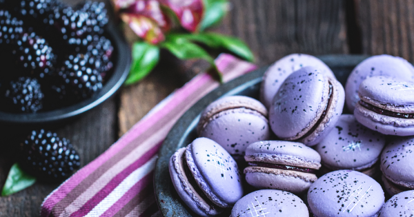 Macarons de zarzamora, crujientes por fuera y cremosos por dentro