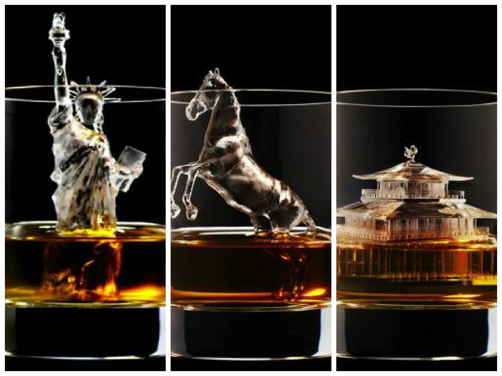 Parece que lo de hacer estatuas de hielo está pasado de moda. Ahora lo que se lleva es tallar los cubitos de hielo con formas y diseños que te dejarán con la boca abierta.