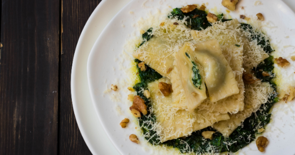 Raviolis caseros de espinaca con ricotta