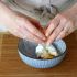 - Frota el interior del molde con el diente de ajo, después pícalo finamente.