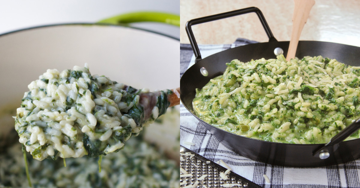 Risotto cremoso con espinacas y parmesano