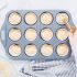 4. Con la ayuda de una manga pastelera, rellena el fondo de los huecos de un molde para muffins (las cantidades de esta receta están pensadas para 6 muffins). Sobre esta base, coloca uno de los huevos cocidos en cada molde. A continuación, recúbrelos con más mezcla hasta taparlos completamente. Espolvorea los 50 gr de queso restantes por encima y otro poco de cebollino picado.