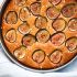 - Dispón las verduras sobre una bandeja ligeramente engrasada. Agrega los camarones.