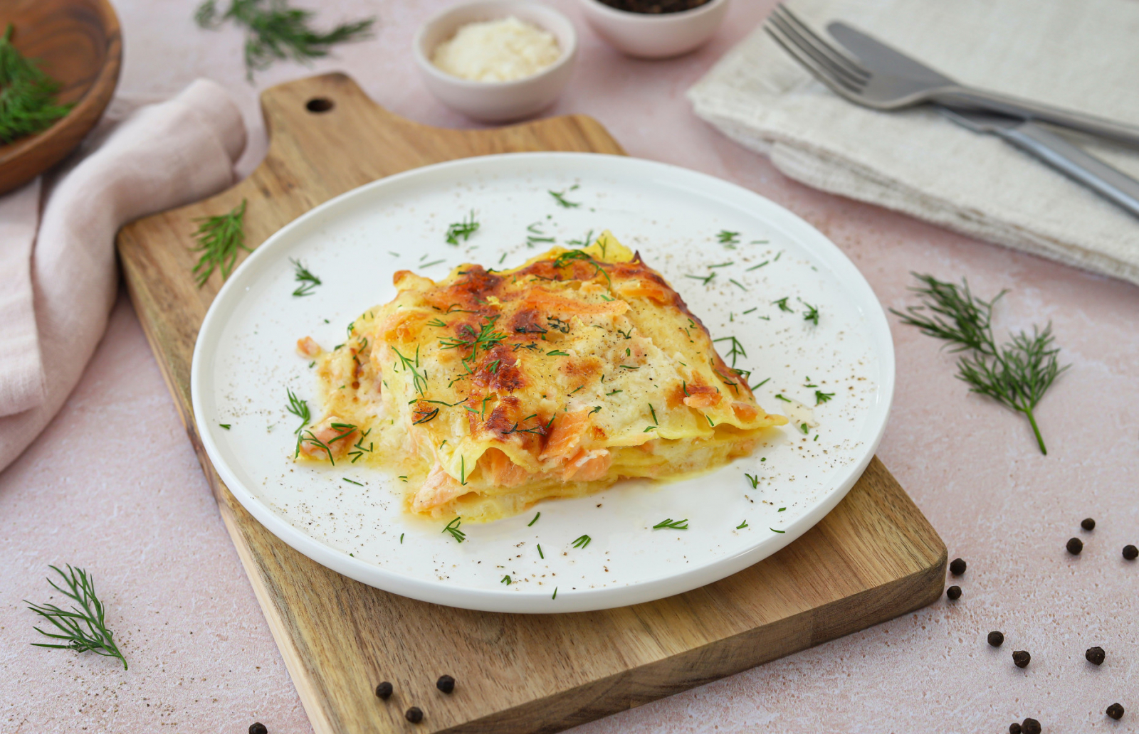 Dale un delicioso giro a la clásica lasaña con nuestra receta que incorpora sabroso salmón ahumado en lugar de la tradicional salsa de carne.