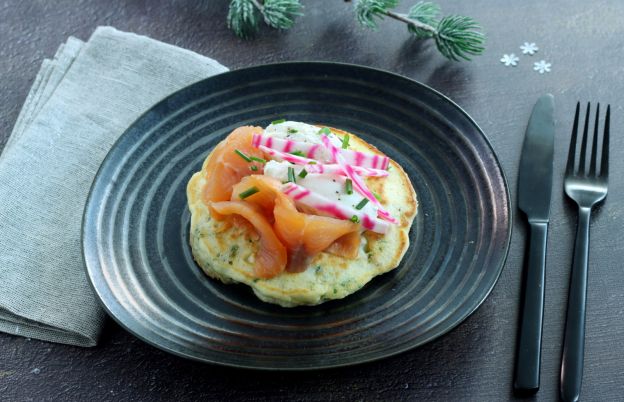 Este fácil y elegante platillo de salmón ahumado es perfecto para recibir visitas o para hacer un brunch original en casa. La masa obtiene un toque extra de sabor gracias a las hierbas y la cebolla roja, mientras que la remolacha Chioggia, suavemente dulce y terrosa, complementa perfectamente el rico salmón ahumado. Añade una cucharada de nata montada y tendrás un plato digno de admiración en un abrir y cerrar de ojos.