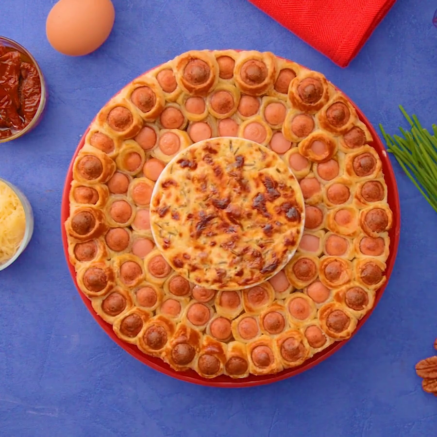 Rosca de salchicha con masa crujiente y aderezo cremoso para una tarde de películas