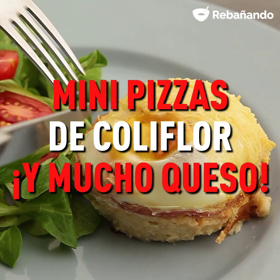 Estos muffins pizza tienen tanto queso que los vuelve irresistibles. ¡Y su base es de coliflor, para sorprender a tus papilas gustativas!