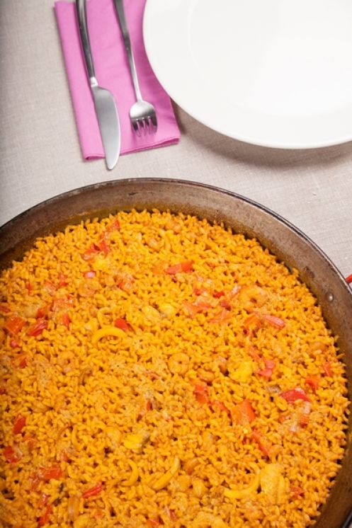 Se prepara en el mismo recipiente que la paella, y al igual que este famoso plato se puede hacer tanto con carne como con marisco. ¡Una auténtica delicia!.