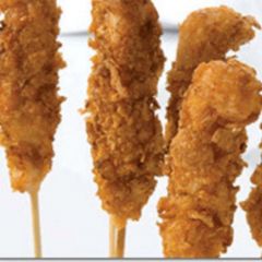 5-Un aperitivo práctico, unas brochetas de pollo rebozado para no tener que despegar los ojos de la pantalla.