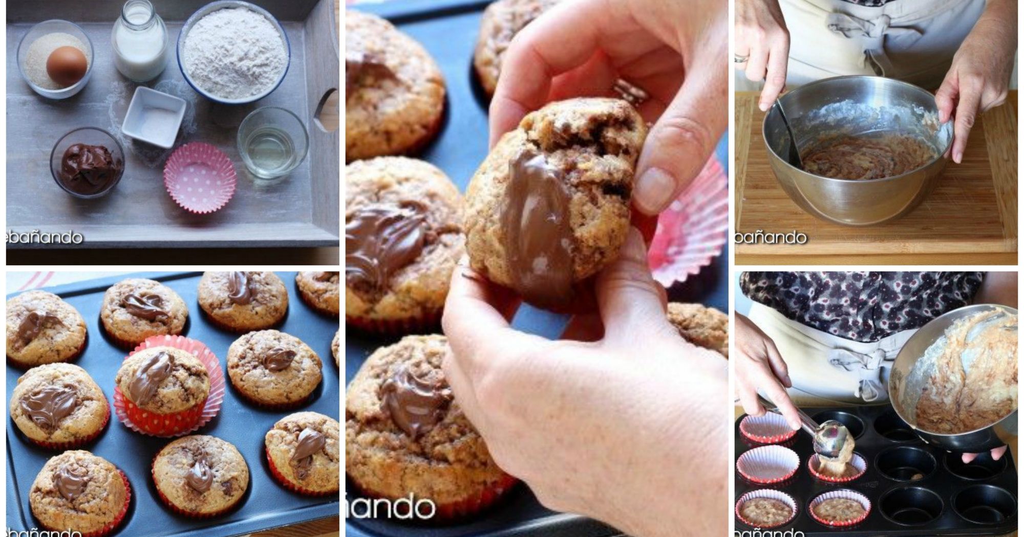 Haz en casa estos riquísimos muffins rellenos de Nutella