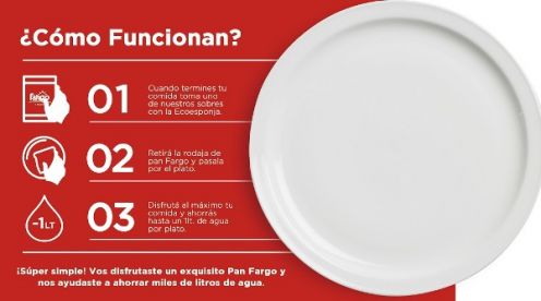 Se estima que cada vez que una persona lava los platos, se gastan en promedio 1.6 litros de agua potable, de modo que la marca Argentina de panificados, que pertenece al grupo Bimbo, decidió adoptar esta popular costumbre para crear la Eco Esponja.