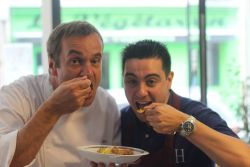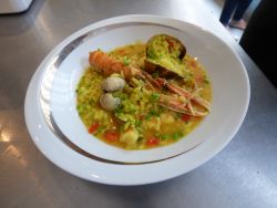 Y Sergio con su “arroz caldoso con marisco” nos dejó a todos los asistentes mudos…el plato del español era el más esperado y el que más se hizo de rogar, será que nuestra gastronomía gusta a todos o será que Sergio desde el “minuto uno” perfumó el “Atelier” de una manera que enganchó hasta al Chef Damien, quien nos reconoció que el plato de arroz caldoso fue su favorito.