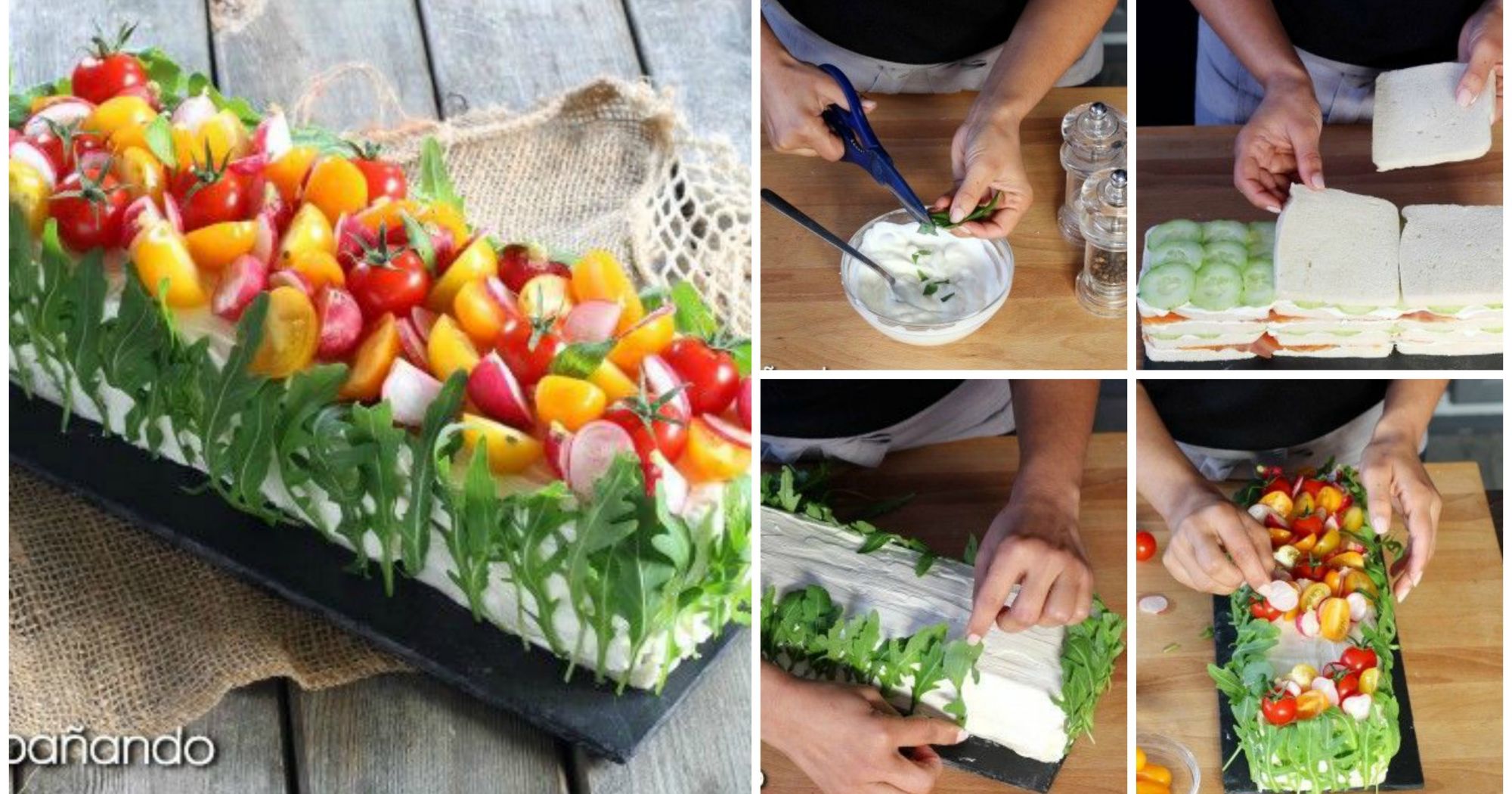 Un precioso jardín en tu mesa: Prepara este rico pastel de sándwiches