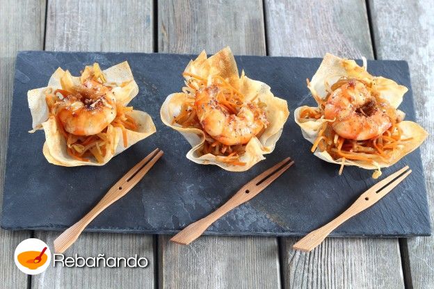 ORIGINALES y SENCILLAS cestitas de gambas y verduras