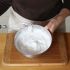 - Mientras tanto, agrega en un tazón la nata espesa y la nata para montar y bate vigorosamente para que esponje.