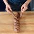 - Forma un rollo con la masa, córtalo en rodajas de 2cm de ancho, y colócalas horizontalmente en un molde para tartas.