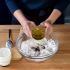 - A continuación, agrega poco a poco la harina tamizada. Amasa hasta formar una bola, cúbrela con plástico o con un trapo y deja reposar 1 hora hasta que doble su tamaño.