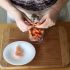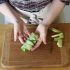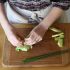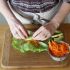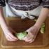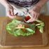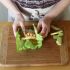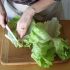 Técnica para retirar el tronco central de una lechuga tipo iceberg. Dándole un golpe seco contra una superficie resistente como una encimera, podemos extraer la parte central y dura de la lechuga de una sola vez.