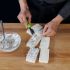 3. Asegura el conjunto con un par de palillos. Ahora empapa cada uno de tus cordon bleu en las yemas de huevo batidas y, a continuación, pásalos por el pan rallado.