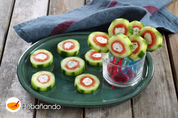 Deslumbra con estos frescos rollitos de pepino, salmón y queso azul