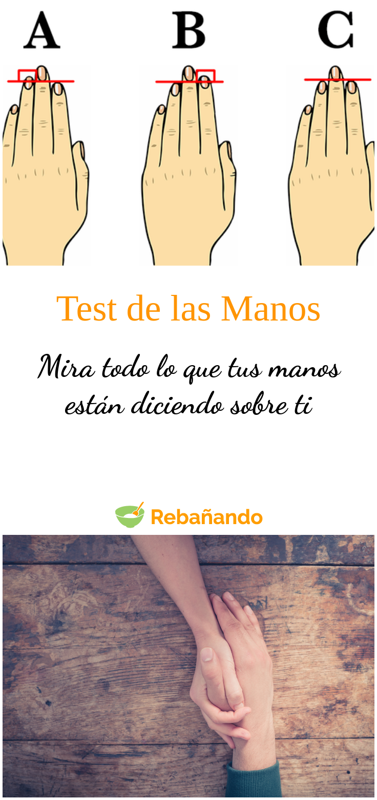 Mira tus manos con atención. Observa especialmente la longitud del índice y del dedo anular, para determinar a cuál de los tres tipos de manos que existen pertenece la tuya.