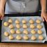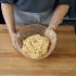 3. Saca pedacitos de la masa (calcula el tamaño teniendo en cuenta que deberían salir ocho), extiéndelos un poco, coloca una bolita de mozzarella en cada uno de ellos y ciérralos alrededor de ella.