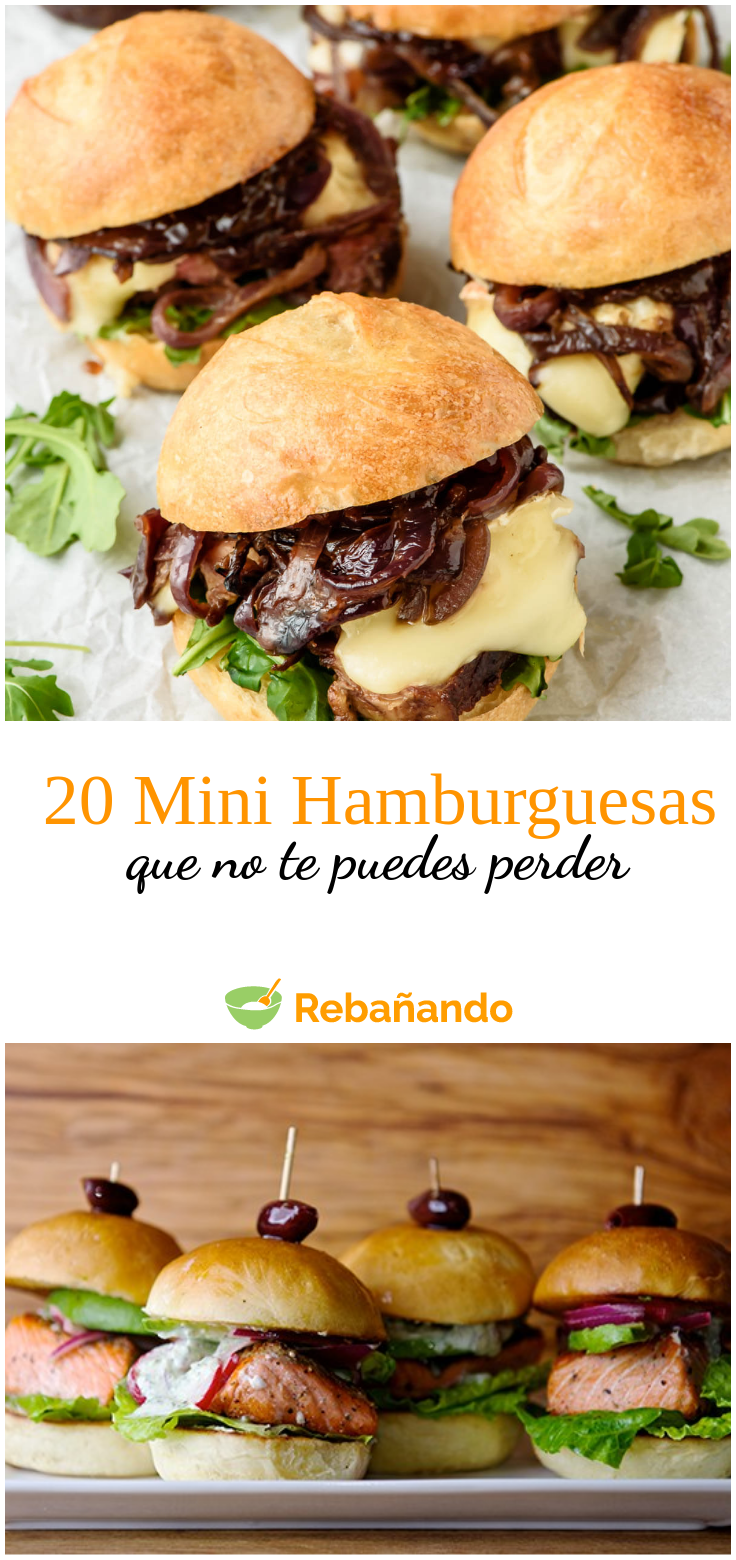 Para salirse de la rutina de la clásica hamburguesa con queso y bacon, aquí te presentamos 20 ideas diferentes de MINI HAMBURGUESAS ¡una mejor que la otra!