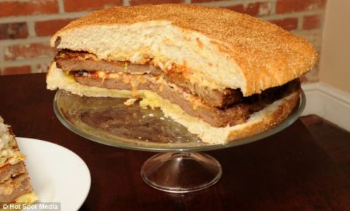 Según su creador, esta hamburguesa tiene 13 mil calorías, es decir, lo que un hombre promedio debería consumir en el plazo de una semana.