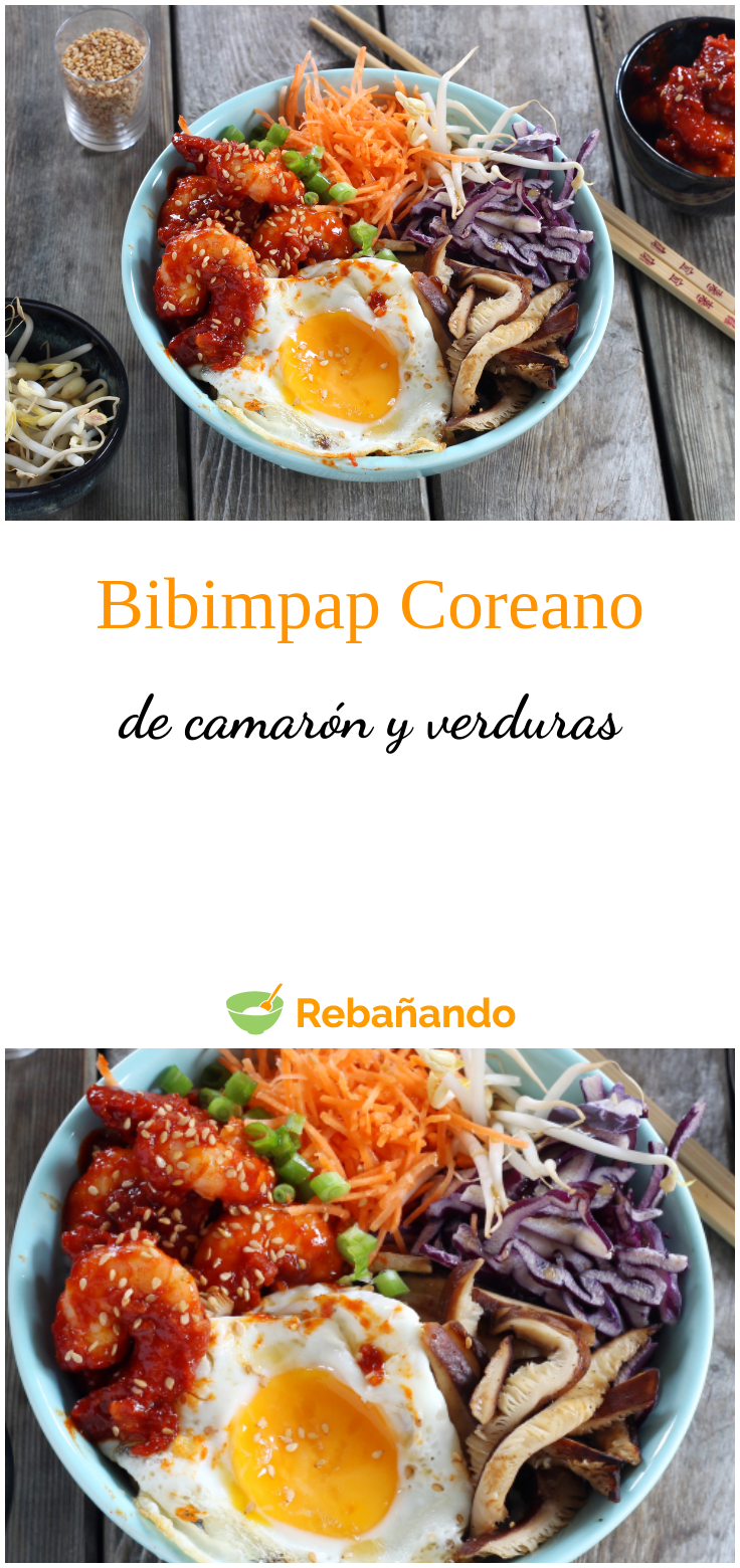 Escápate a Corea con este delicioso Bibimbap de gambas, setas y vegetales