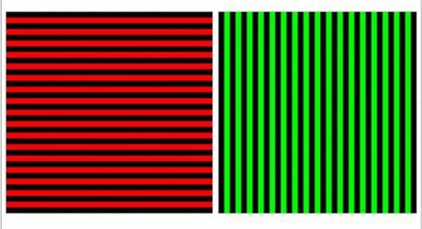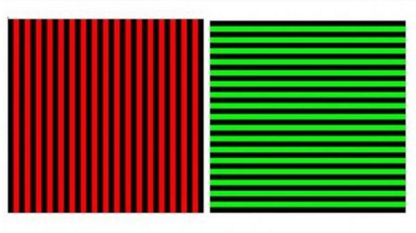 Si has seguido los pasos correctamente, no habrás visto esta última imagen en blanco y negro sino en tonos verdes y rojizos. Algunos trabajos científicos hablan, aparentemente, de personas que han sufrido este efecto durante meses. Pero tranquilos, hay un antídoto: mirar la siguiente imagen (en la que el sentido de las líneas se ha intercambiado) corregirá la alteración.