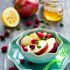 - Decora con cerezas, kiwis en rodajas, fresa picada y mora azul.