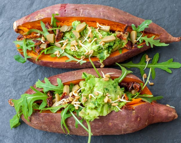 Sucumbe al antojo de manera saludable con esta crujiente pizza de boniato con verduras.