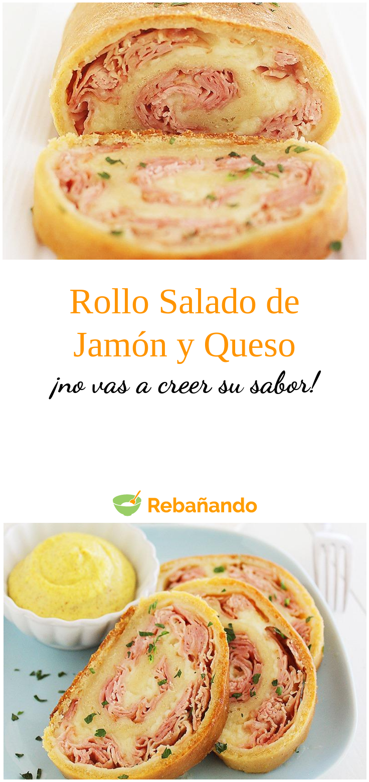 Este rollo de jamón y queso es delicioso, fácil de preparar y transportar. Ideal para llevar al trabajo o para recibir a tus invitados.