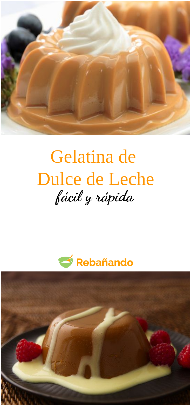 Esta riquísima receta mezcla dos de nuestros dulces favoritos: la gelatina y el dulce de leche. Es una receta fácil, rápida y económica que puedes hacer en muy poco tiempo desde la casa y servirla para la merienda de los niños o en fiestas de cumpleaños.