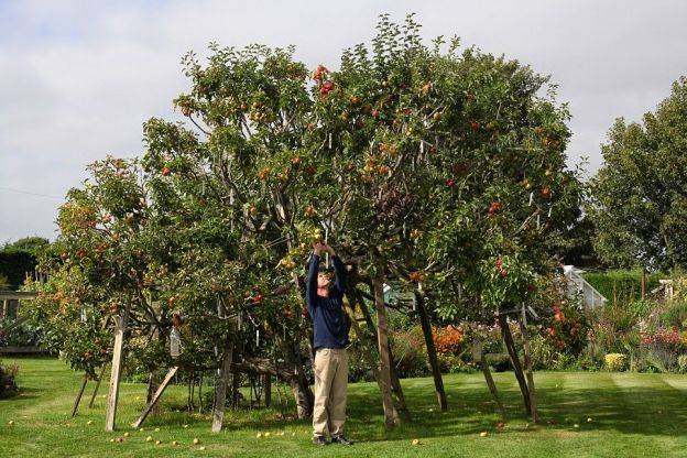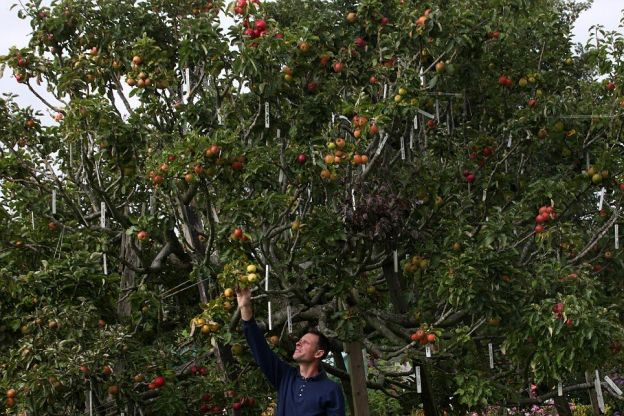Paul Barnett es un horticultor que ha dedicado los últimos 24 años de su vida al árbol que tiene dentro de su propiedad en Chidham (Inglaterra). Cada invierno inserta secciones de otros manzanos en su árbol original, consiguiendo así nuevas variedades de la fruta, entre ellas algunas especialmente raras de encontrar como la Withington Fillbasket, originaria de 1883, o la Eady’s Magnum, de 1908.