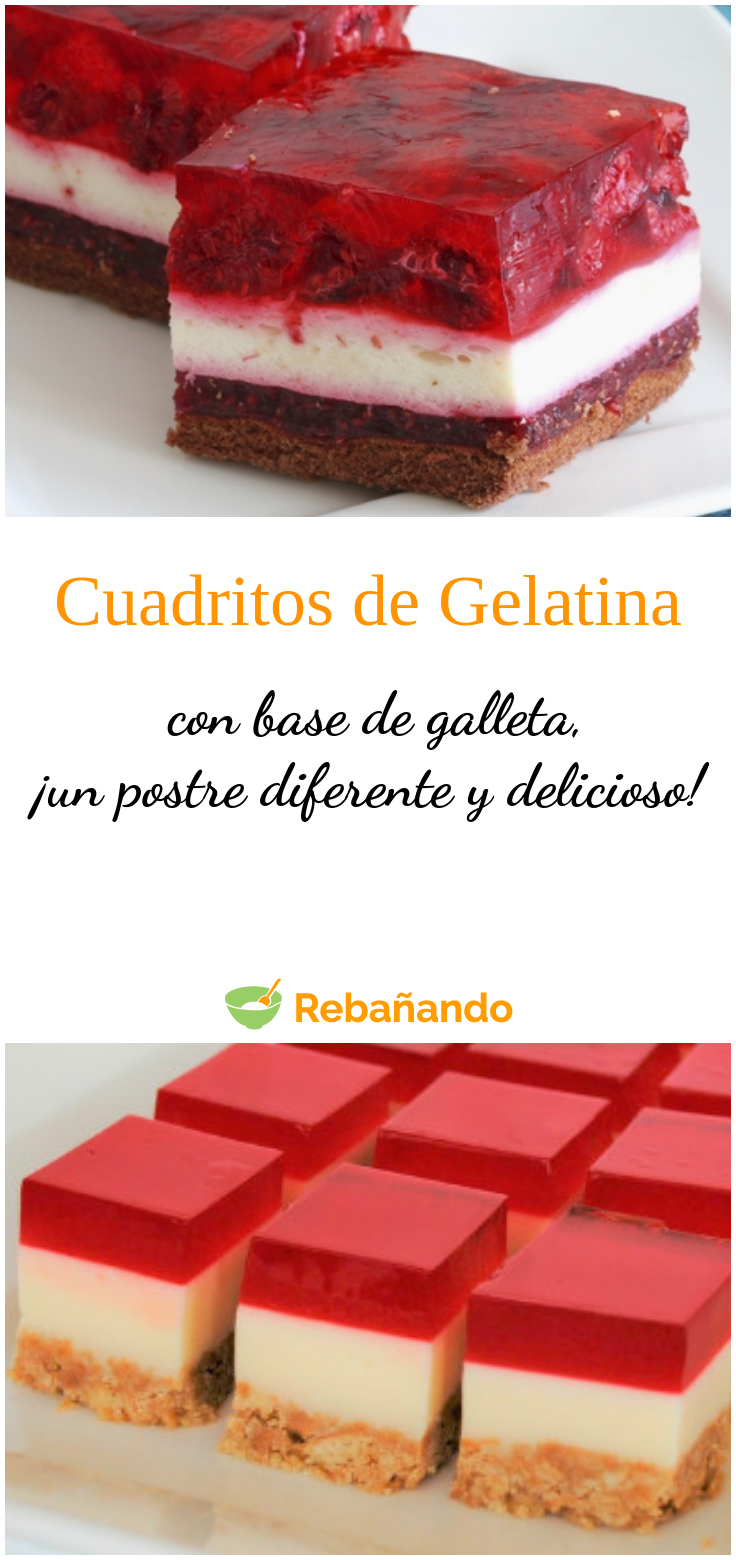 Cubitos de gelatina con base de galleta, ¡un postre diferente y delicioso!