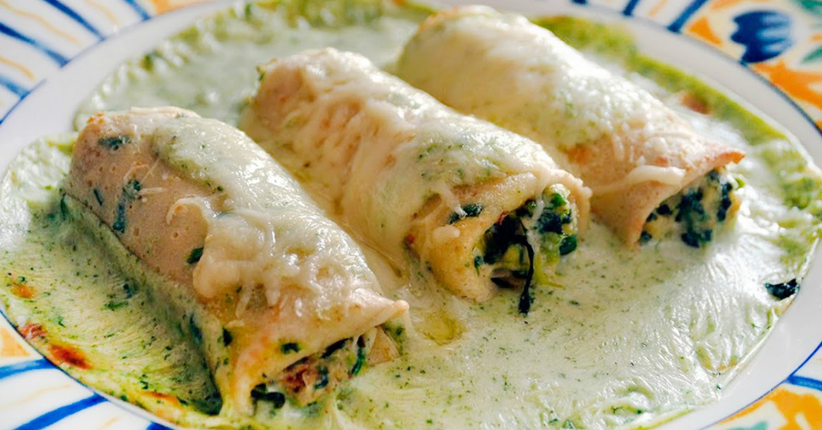 Si, al igual que nosotros, a ti también te encantan los canelones, esta original receta será una de tus preferidas. Si te parece un proceso engorroso preparar la pasta y rellenarla una por una, tenemos una alternativa muy original y no menos sabrosa. Los canelones hechos con crepes son muy suaves y fáciles de preparar. En esta ocasión vamos a preparar un relleno súper cremoso con espinacas y queso ricotta, aunque también puedes cocinar un poco de picadillo con base de tomate. Para terminar, la salsa bechamel hecha en casa le da un toque insuperable. Estamos seguros que te encantarán.