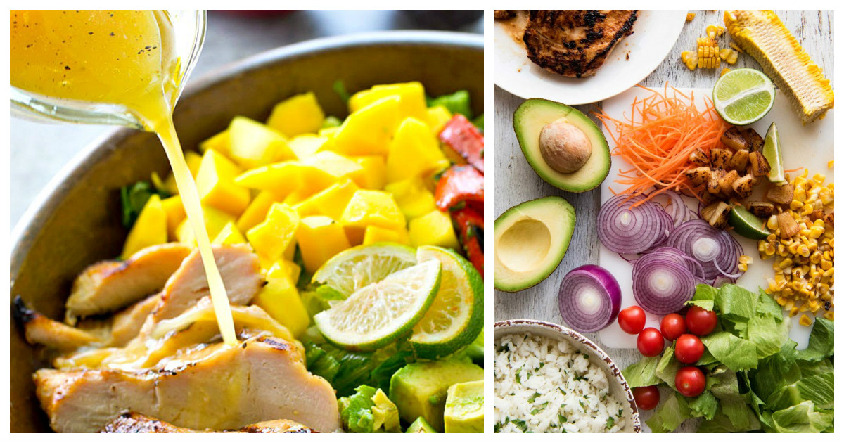 - Coloca las verduras en la ensaladera, pon encima las pechugas y finalmente el aderezo, al momento de servir.