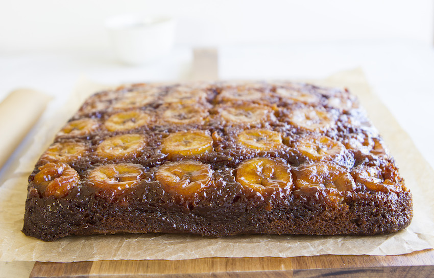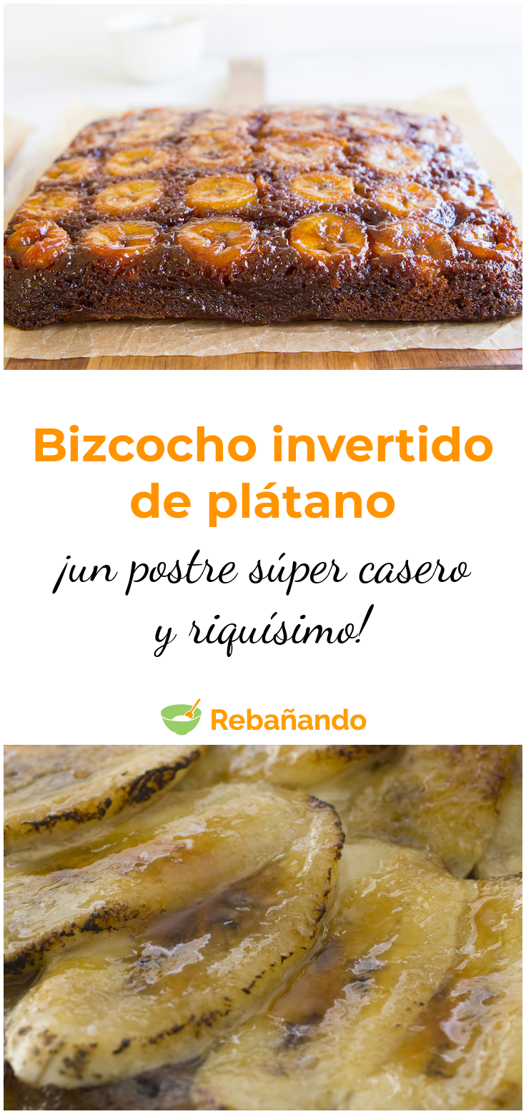Bizcocho invertido de plátano flameado con ron, la receta original