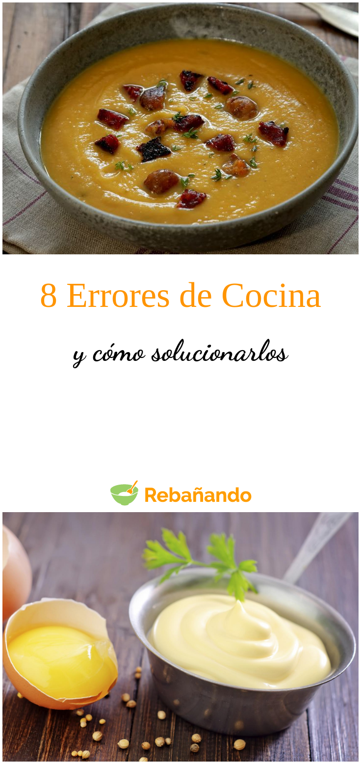 Os dejamos las 8 soluciones para los 8 errores más frecuentes en cocina: exceso de sal, mayonesas cortadas, exceso de picante, etc.