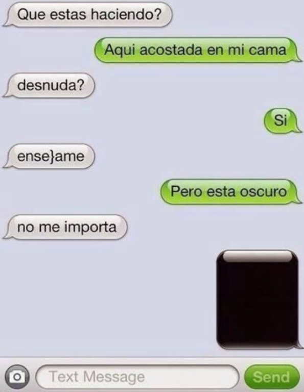 Esta pregunta (bastante picante) te pondrá cachonda a la par que confusa y enfadada. Desde esta redacción, te recomendamos que NUNCA mandes ese tipo de imagen porque puede jugarte una mala pasada. ¿Te imaginas que tu FOTO SEXY termina en internet? No serías ni la primera ni la última persona a la que sucederá algo similar. Por ello, vamos a darte varias ideas SIMPÁTICAS para que le contestes a tu pareja cuando te escriba esas palabras mágicas: '¿me mandas una foto desnuda, amor?' CLARO CARIÑO.