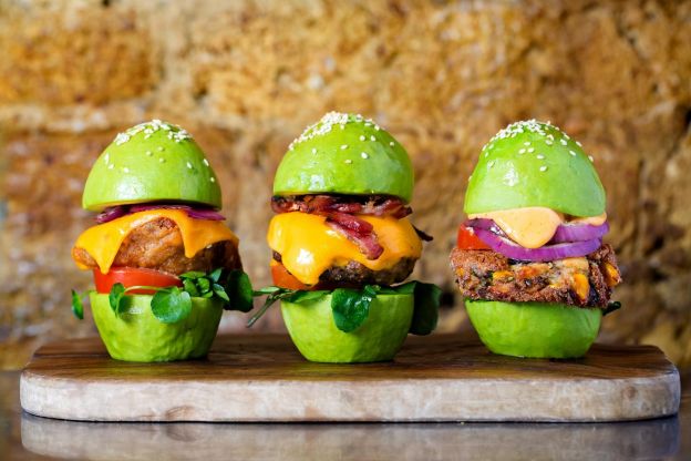 Sabemos que no es fácil cuidar la línea en un mundo lleno de cuentas de Instagram con deliciosa comida chatarra y nuevos restaurantes con platillos desbordantes de queso, tocino o chocolate. Para esos momentos en los que sientes que vas a sucumbir a la tentación, siempre es bueno contar con opciones menos calóricas pero igual de reconfortantes. Es por ello que el día de hoy te traemos esta increíble receta de hamburgesas fit, sustituyendo el pan por mitades de aguacate. Si lo acompañas con ensalada o "chips" de calabacín al horno tendrás un platillo que te hará olvidarte para siempre de la comida rápida.