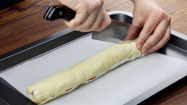 Trenza de salmón hecha con masa de pizza